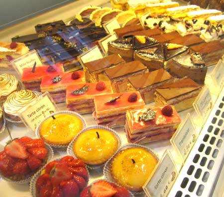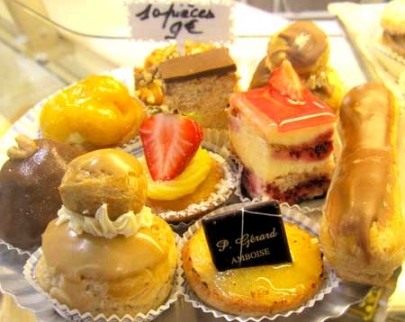 Top: Patisserie selection in Pommard; favorites eclair chocolat; and a vanilla cream filling wrapped in an almondine shell Below: selections from Patisserie Giraud, on Rue National, Amboise Missing: dozens of such places in Paris