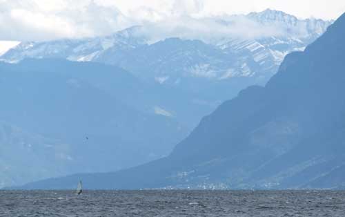 Above: "Products of Region" at Fromagerie Napiot in Vrine, FR, on way through Jura Mts Bottom: on Lac Leman shore at Morges, Suisse, on a cool, windy day